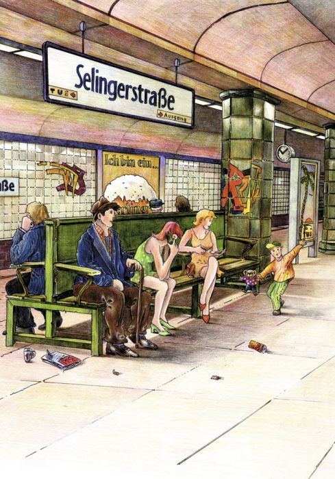 Illustration für das Kinderbuch Phillip und Elling in der U-Bahn